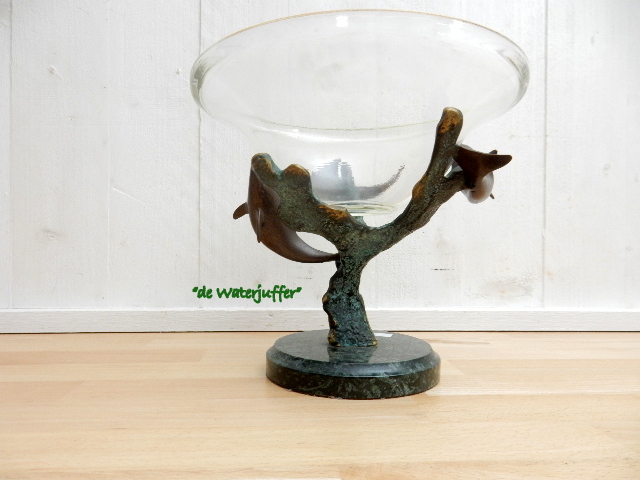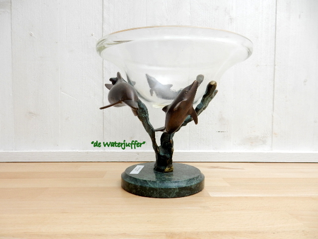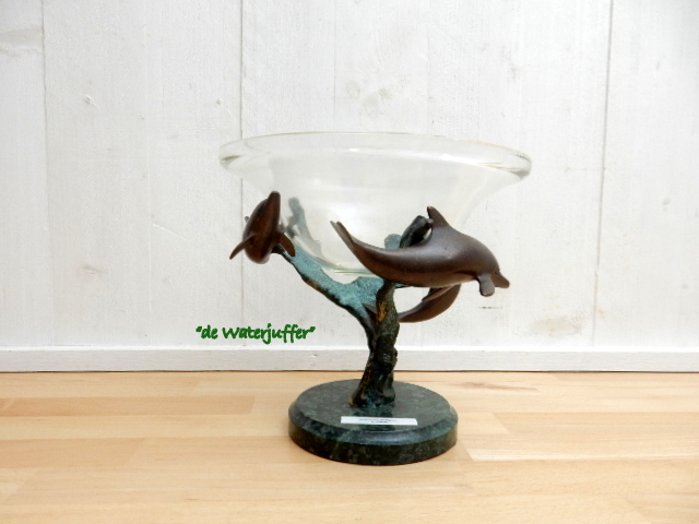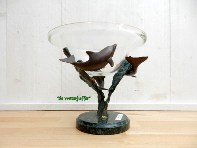 012* Bronzen dolfijnen met schaal afm. 22 x 20 cm.